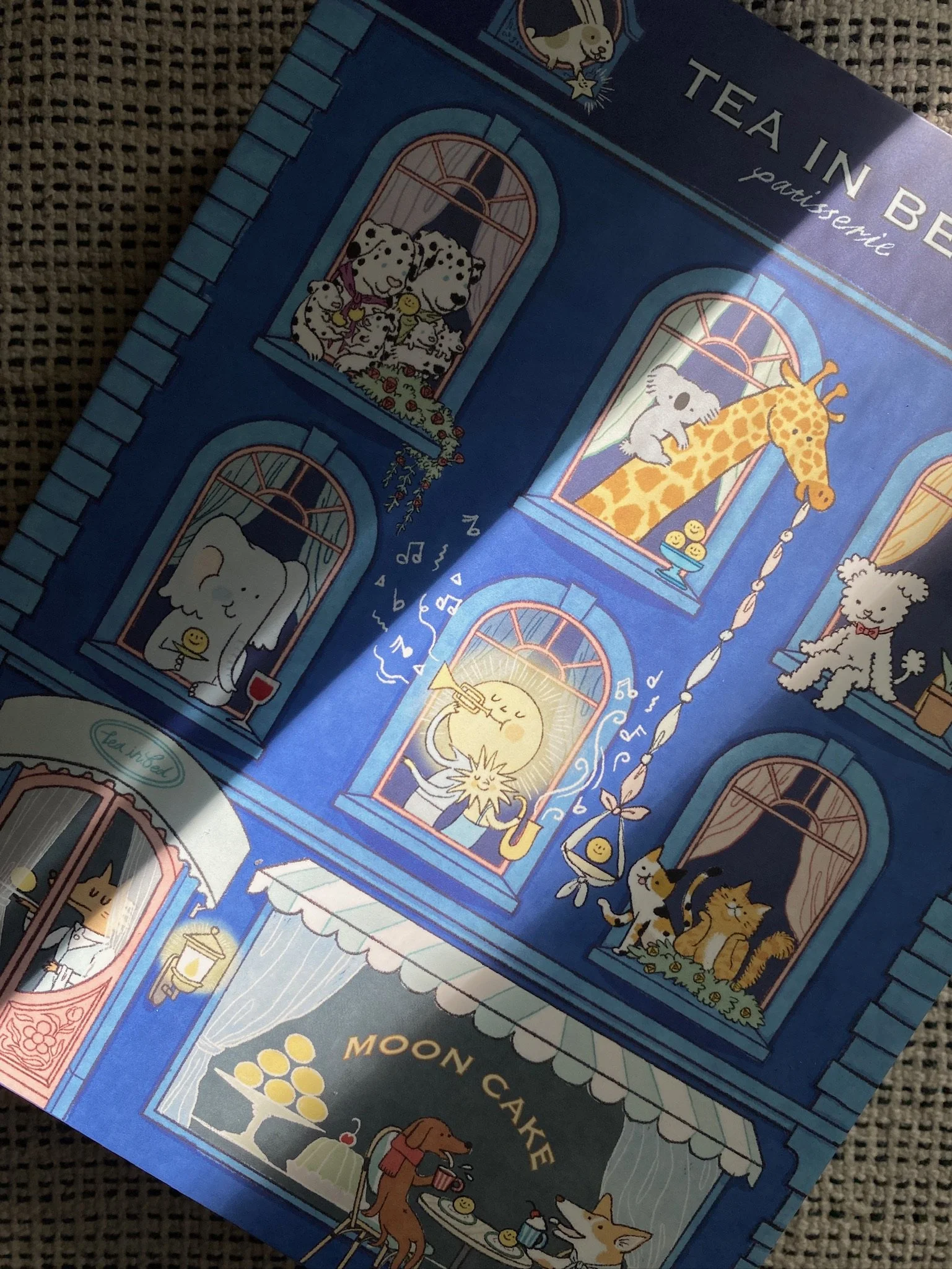 On a beautiful night, the Moon and Star starting playing jazz on the balcony. The residents of the apartment are attracted by the music and gather at the windows to enjoy the performance. A giraffe shares fresh baked mooncakes with his neighbors. Everyone is immersed in the happiness brought by food an music.